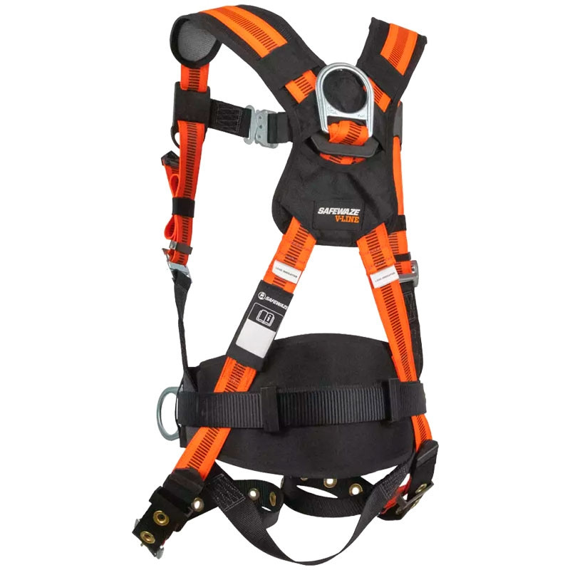 Safewaze V-Line Harness, Tounge-Buckle Leg Strap, Q/C Chest, Tongue & Shoulder Pads, Back & Side D-Rings, Small