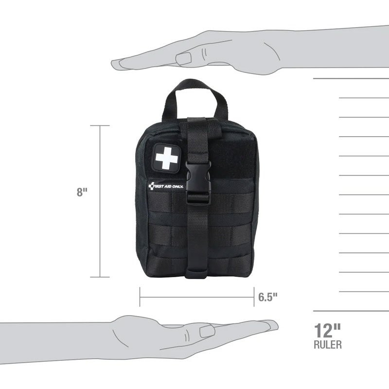 - Contains wide variety of first aid supplies for treating bleeding, burns, cuts and scraps.