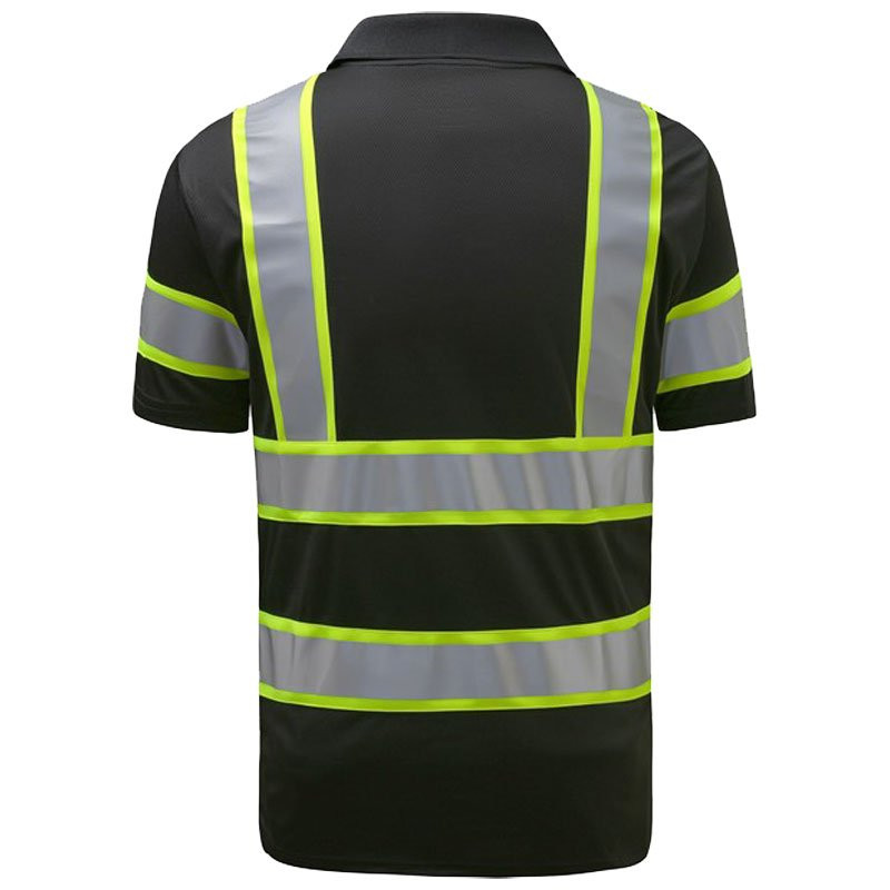 Non ANSI Two-Tone Polo Short Sleeve T-Shirt, Black w/Silver Tape, Single Pocket, 5-XL